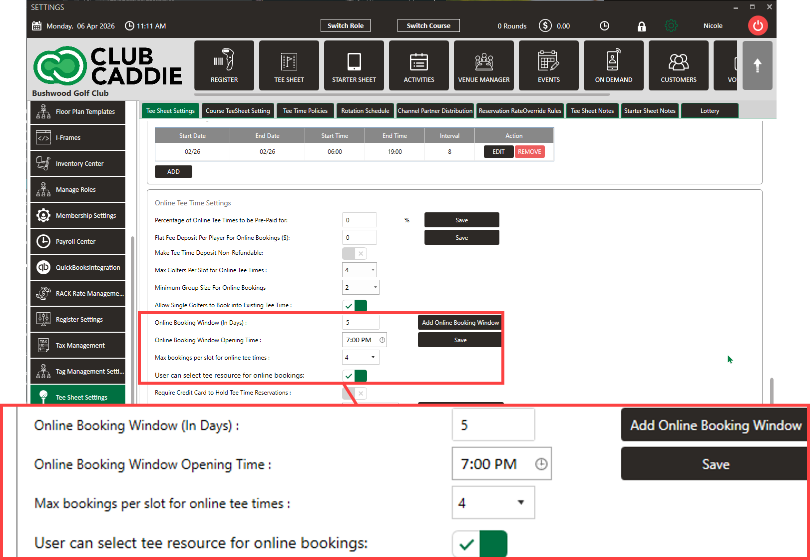 - Step 1: Go to Settings → Tee Sheet Settings.