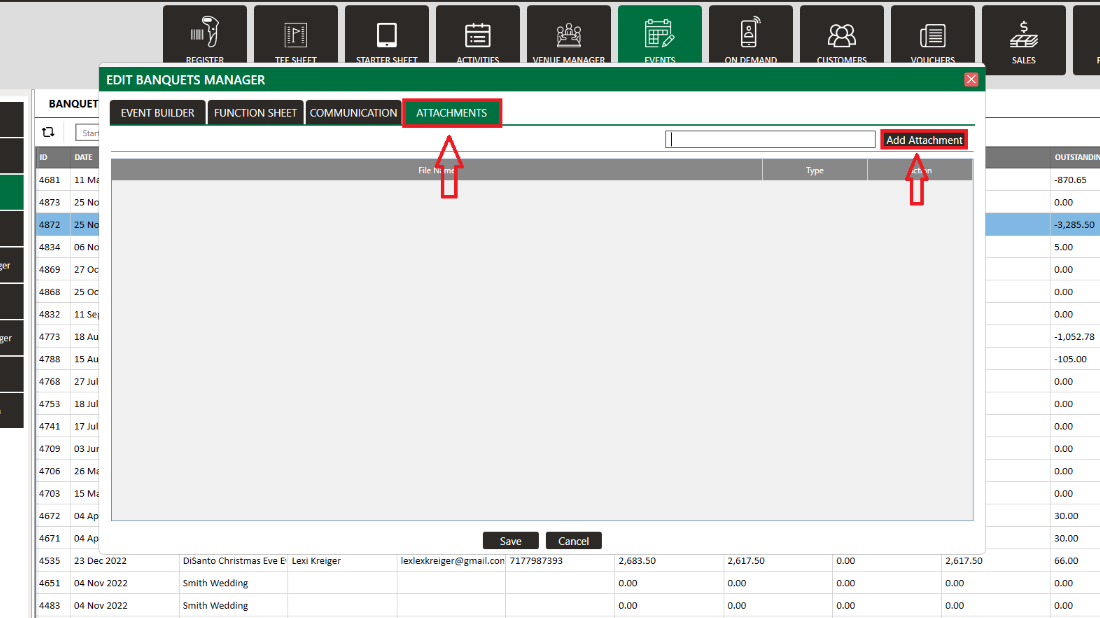 Article Contents: This article contains step-by-step instructions on how to add an attachment to a banquet event in the Banquet Manager.