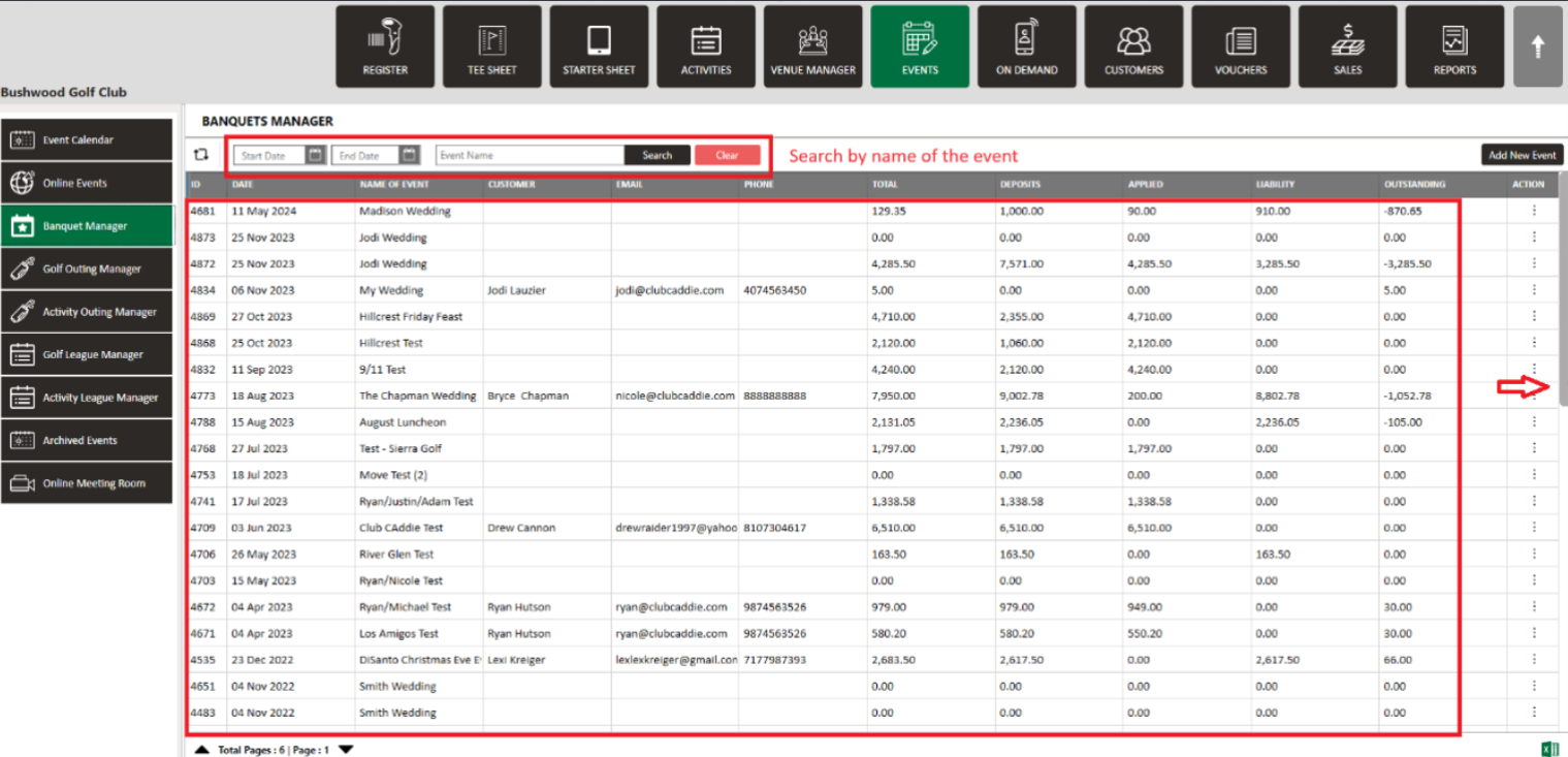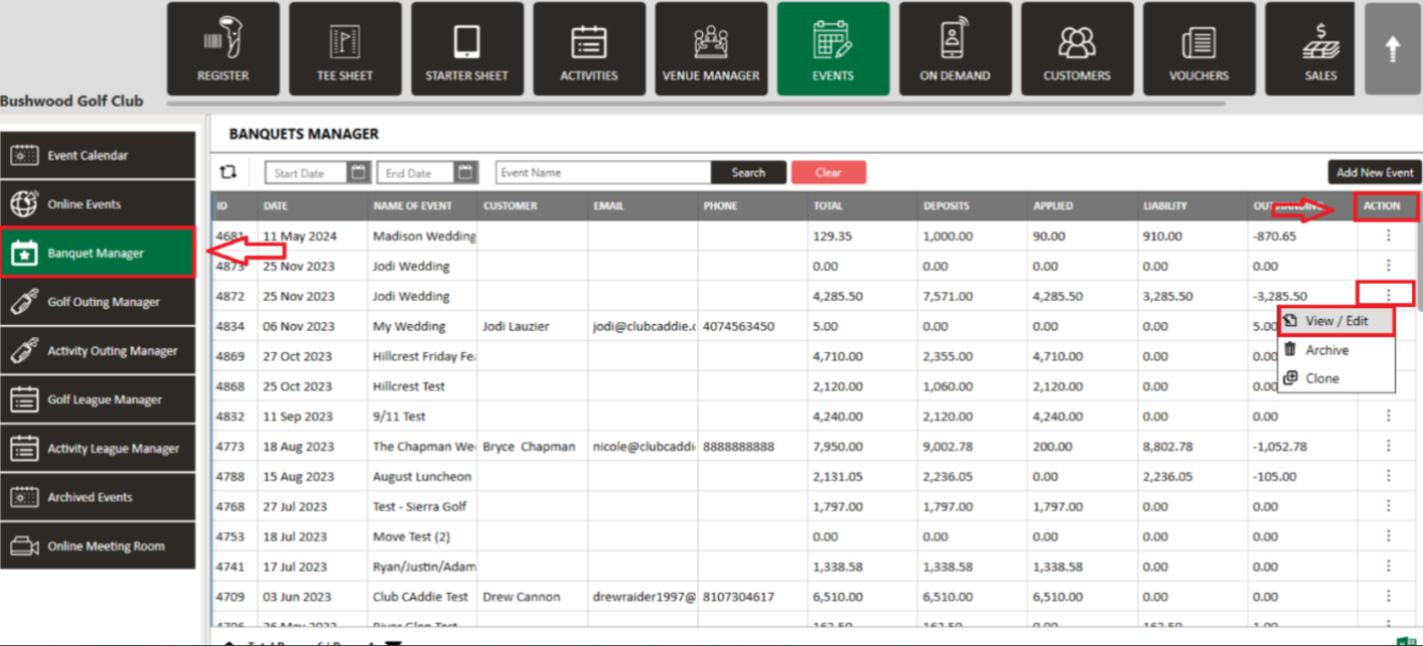 Step 3: Under Action, click on the three small dots, followed by View/Edit. The system will generate an Edit Banquets Manager pop-up window.