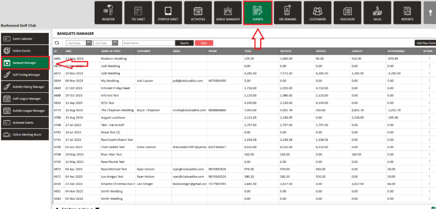 Step 1: Select the EVENTS module from the module navigation menu. Click on Banquet Manager in the left-hand menu.