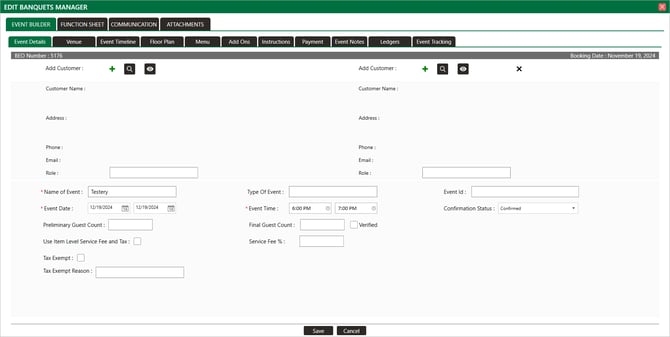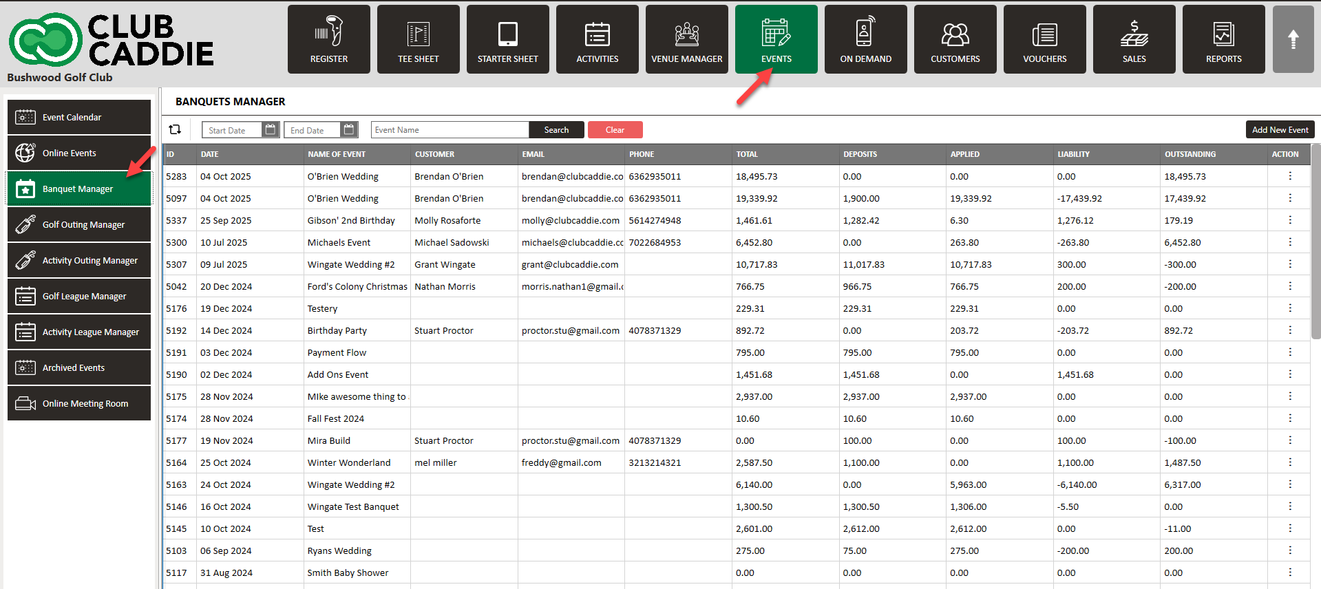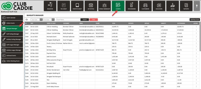 Step 1: Select the EVENTS module, and then click on Banquet Manager in the left menu.