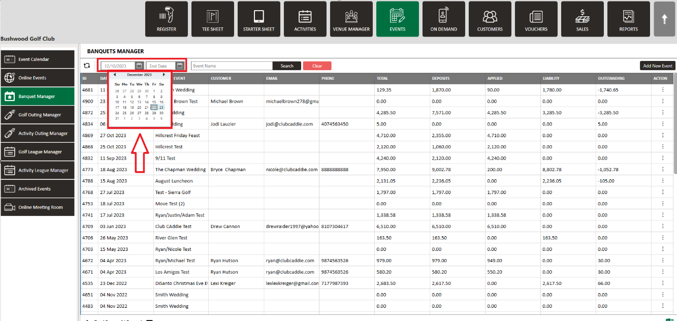 Banquet Manager : Date Filters