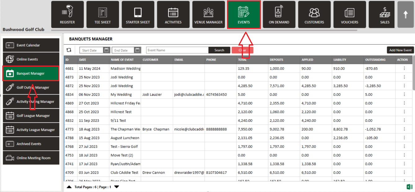 Step 1: Select the EVENTS module from the module navigation menu. Then, click on Banquet Manager in the left-hand menu.