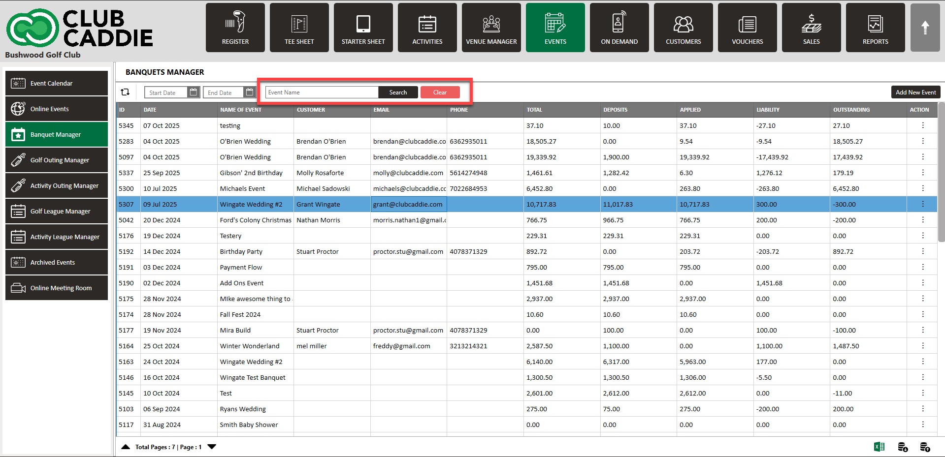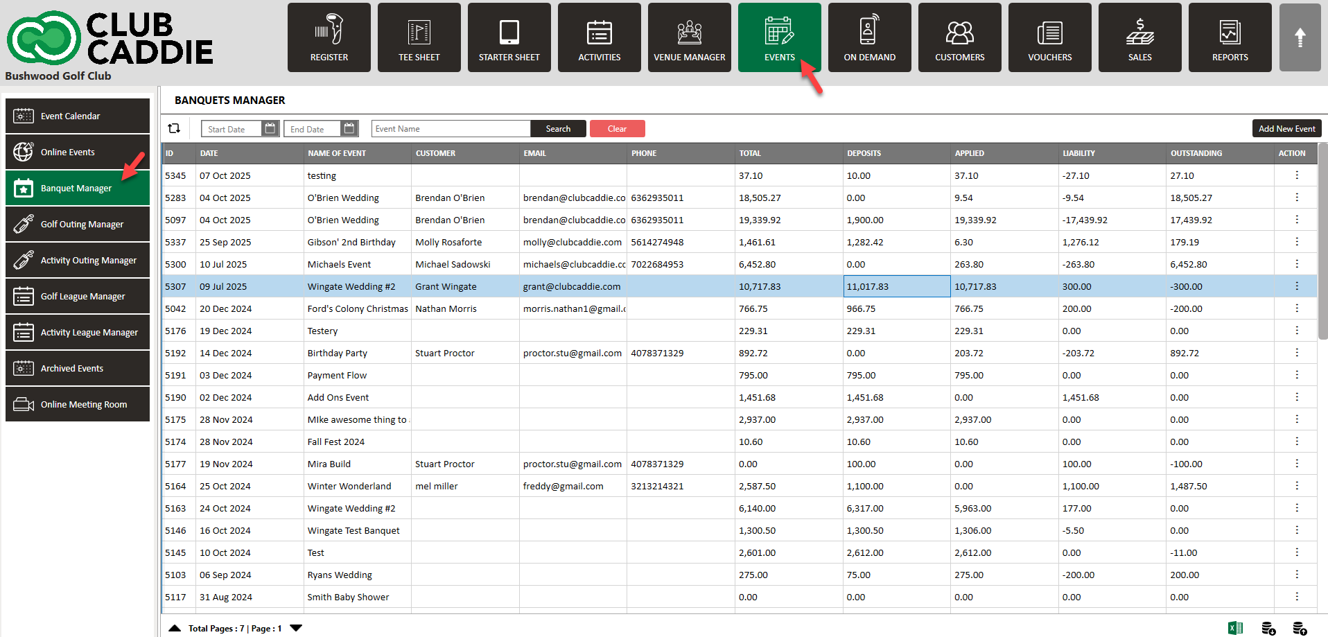 Step 1: Select the EVENTS module from the module navigation menu. Then, click on Banquet Manager in the left-hand menu.