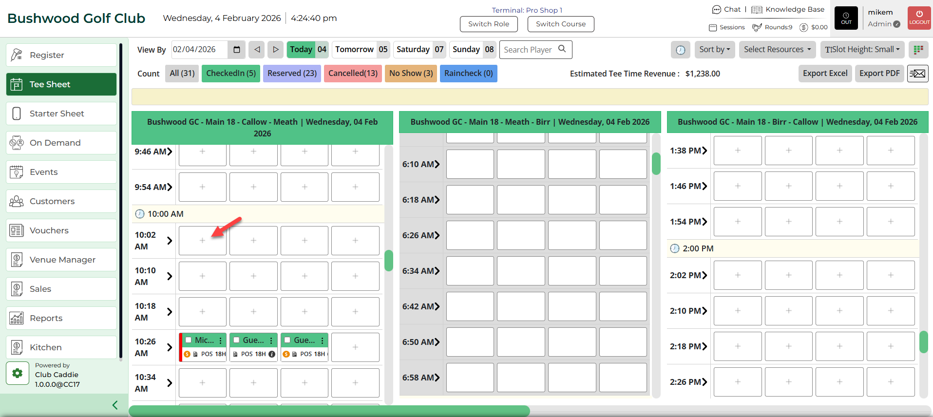 Step 1: Select the TEE SHEET module from the module navigation menu.