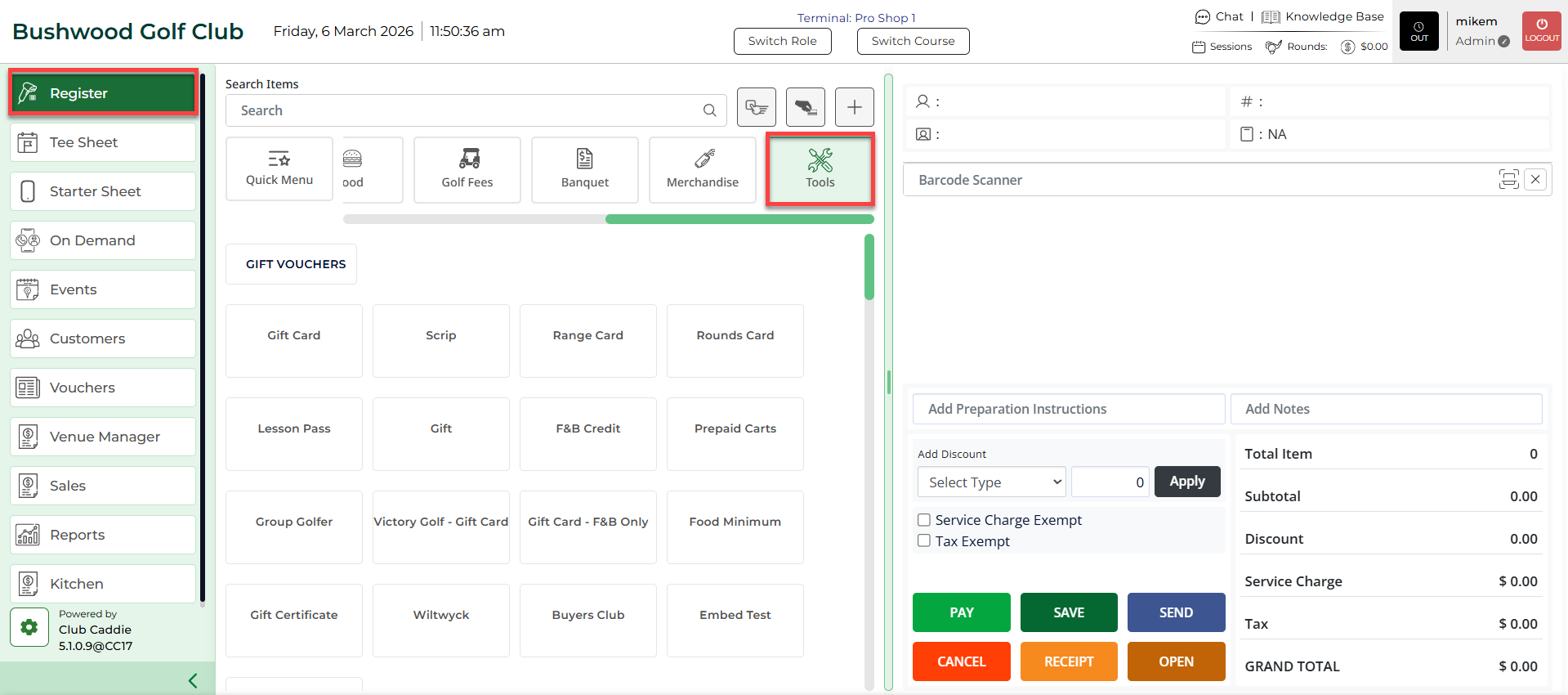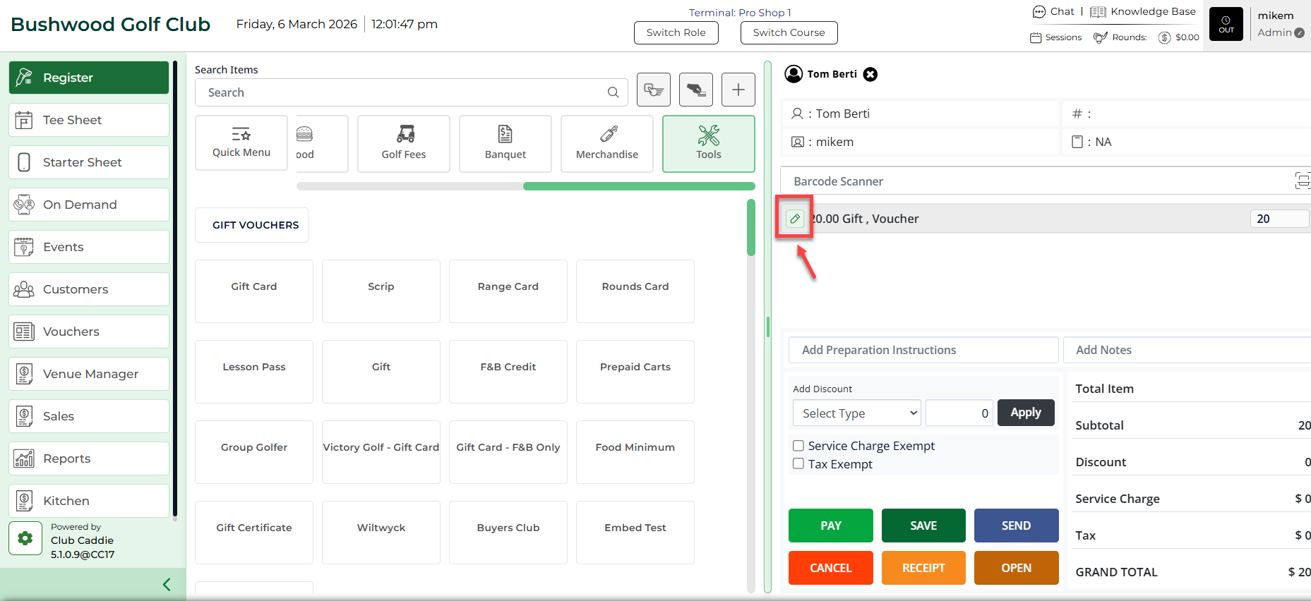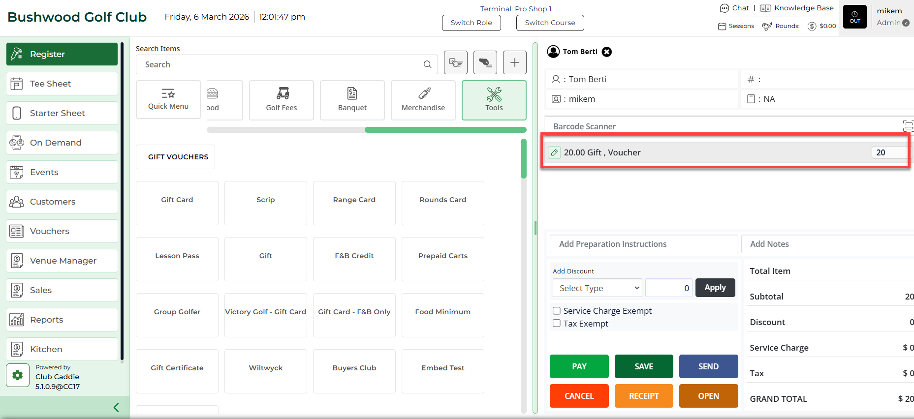 Step 5: The REGISTER will now show the newly created voucher.
