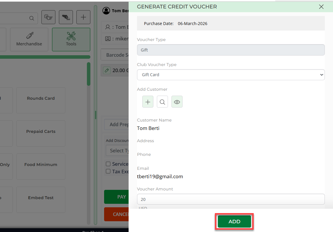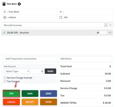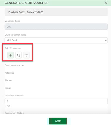 Step 2: Select the Gift Vouchers button. The system will prompt you with a pop-up called Generate Credit Voucher.