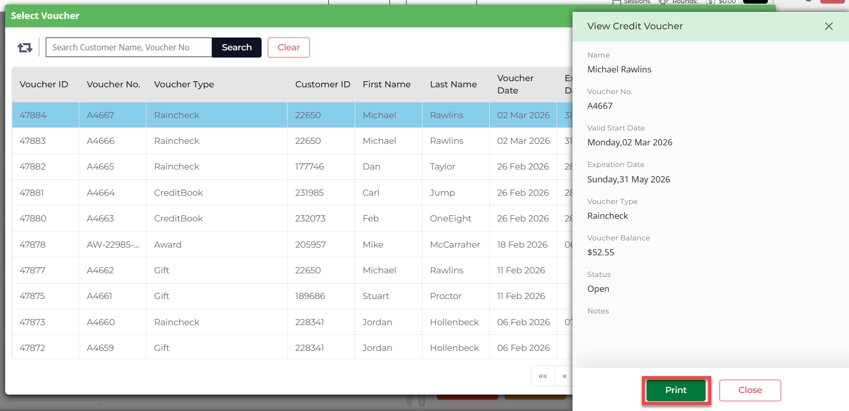 Step 4: You have the option by selecting the Voucher to print the balance for the customer if needed by selecting Print.