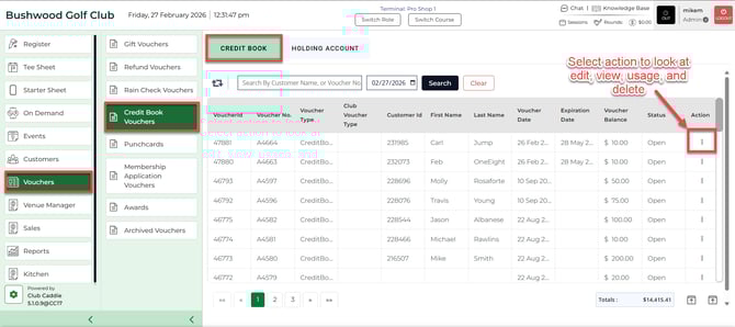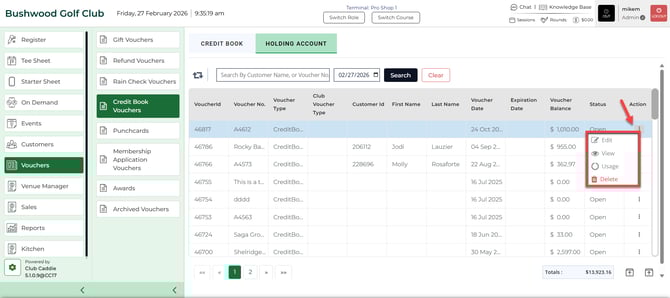 Note that if you do not see this option you will need to contact your course admin to enable the permission for "Voucher Manager" module and the subsequent "Credit Book Vouchers" permission.