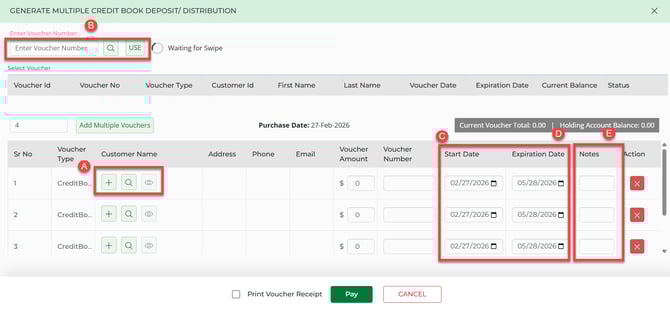 Step 2: This will launch the Credit Book Distribution manager. On the left-hand side you can specify the number of new vouchers we will be creating.