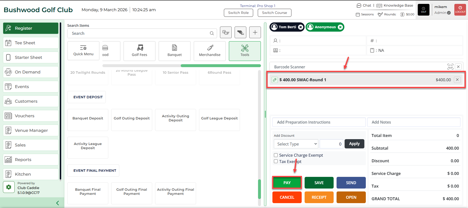 Step 1: In the REGISTER module, select the TOOLS tab.