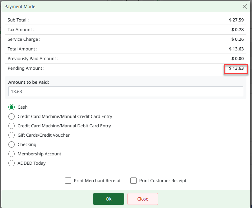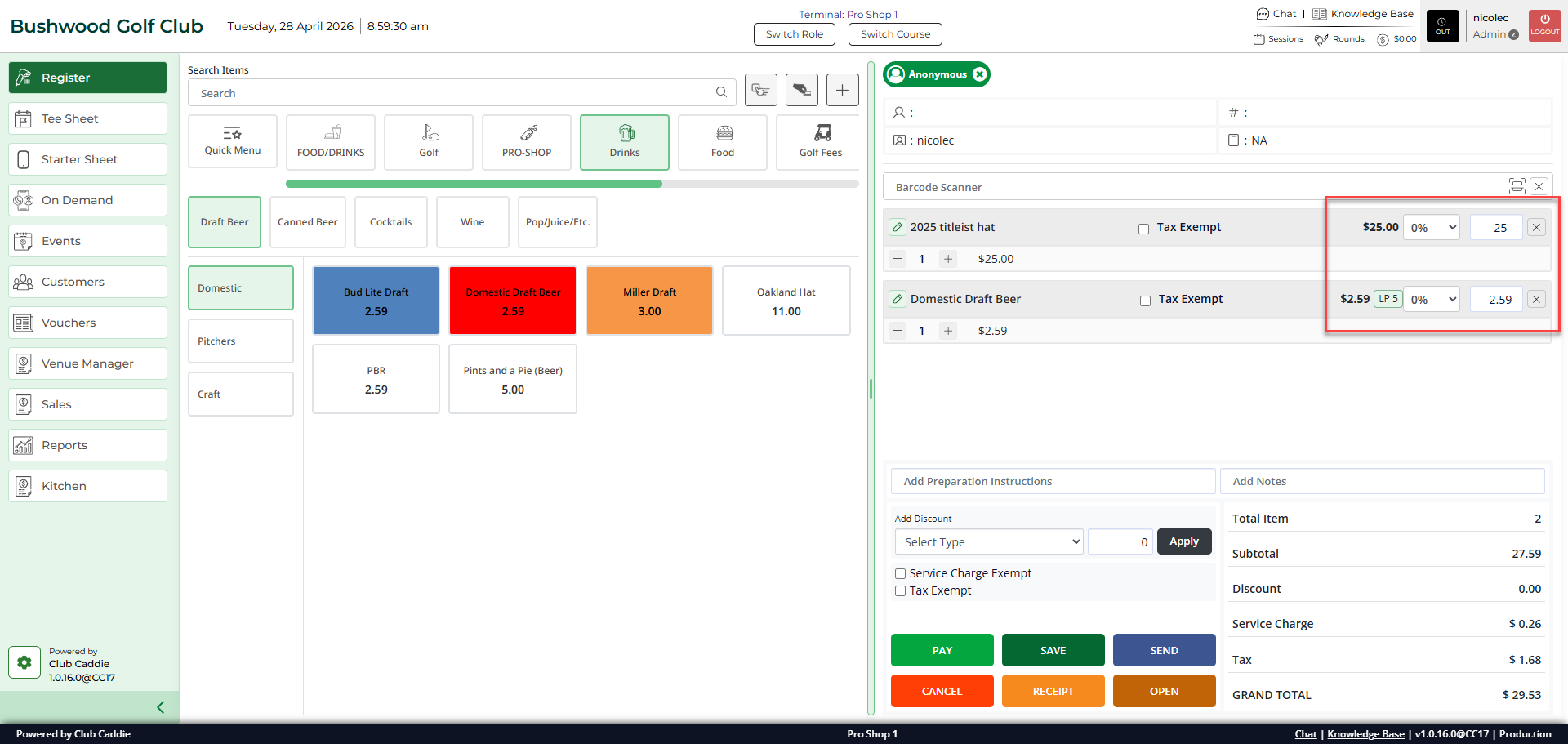 Step 6: Complete the transaction as normal using Pay, Save, or Send. The adjusted item will show its updated price in the transaction summary, while all other items remain at their original prices.