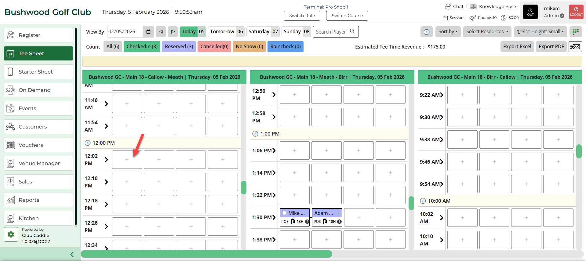 Step 3: Once you have entered the information for the tee time, there are two options on the bottom of the window - Send Confirmation Email and Send Confirmation Text. You may select both options, one option, or if you don't want a notification to be sent, leave both boxes blank. Once you click Reserve or Split Reserve, the tee time will be booked and the confirmation will be sent.![]()