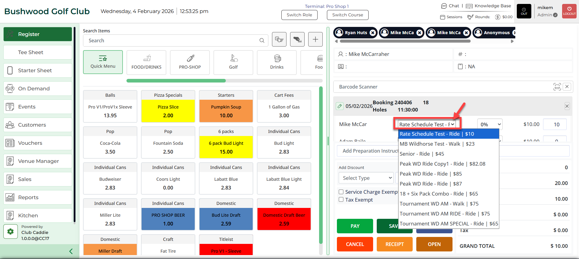 Article Contents: This article contains step-by-step instructions on how to change the rate of a checked-in tee time in the register.