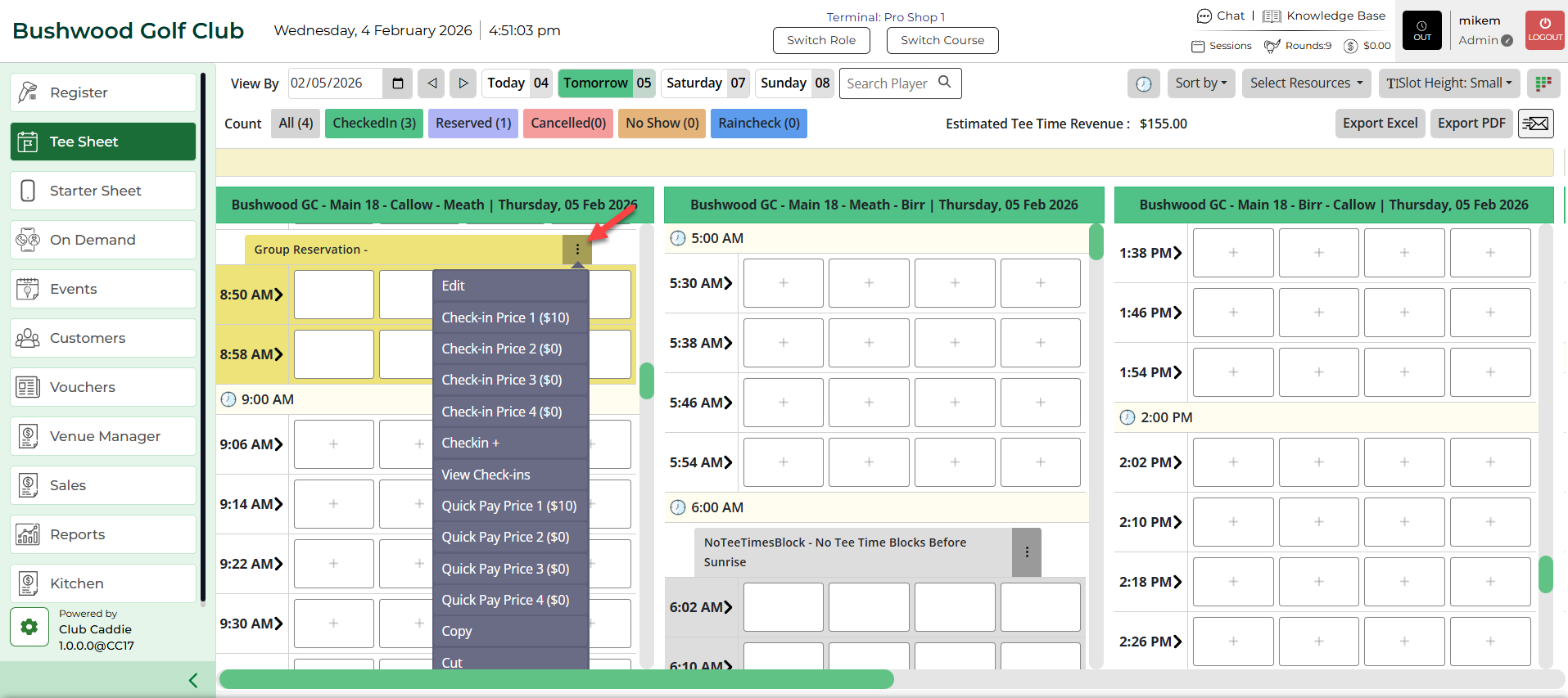 Step 1: Navigate to the TEE SHEET module from the top navigation bar.