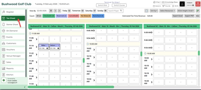 Step 1: Click on the TEE SHEET module from the navigation menu.