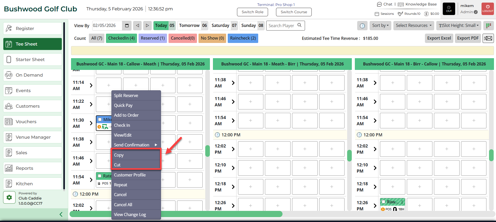 Step 2: Next, right-click on tee time booking that you want to cut/copy-paste and select your option.