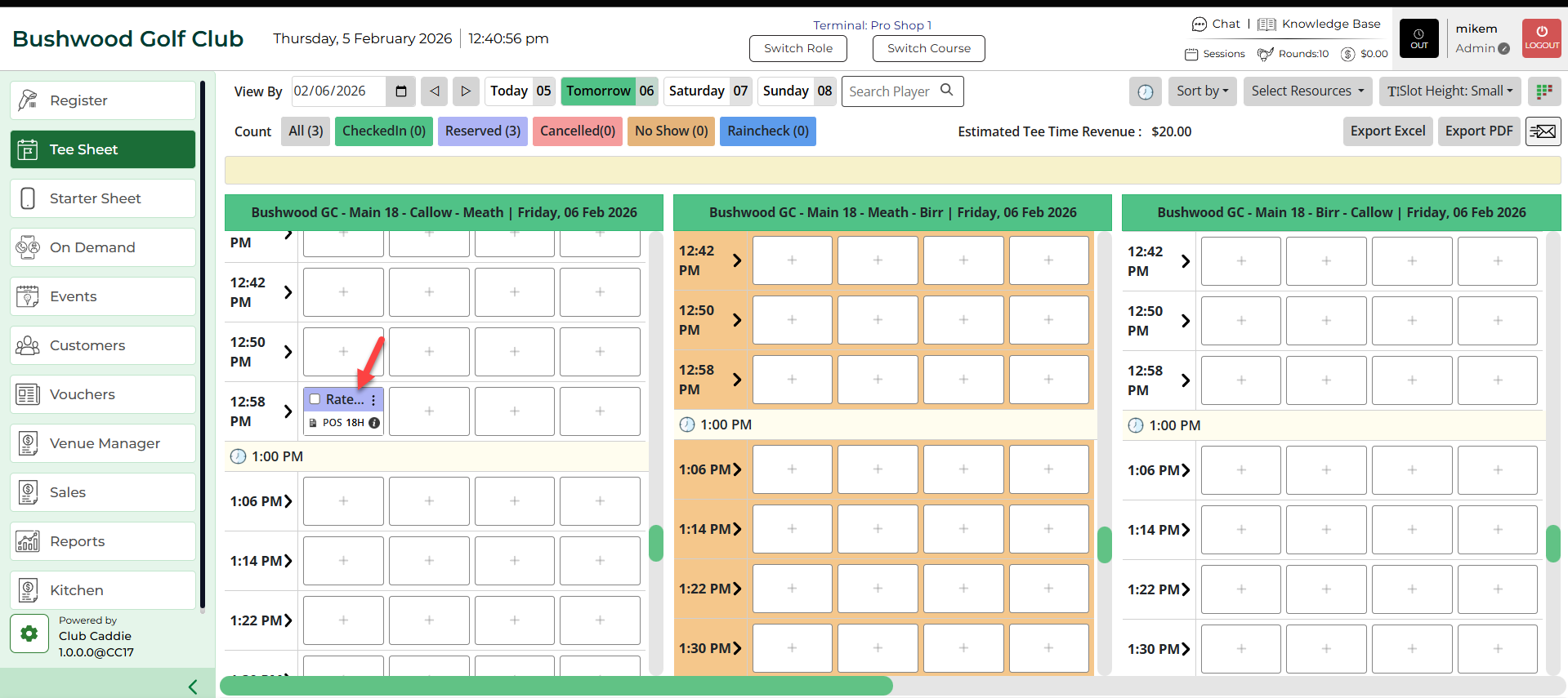 Step 1: Select the the Tee Sheet module.