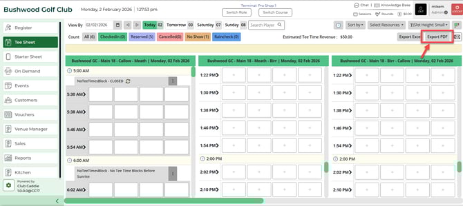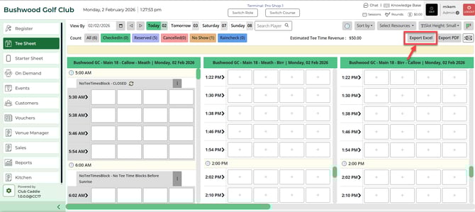 Article Contents: This article contains step-by-step instructions on how to export the tee sheet to Microsoft Excel and as a PDF.