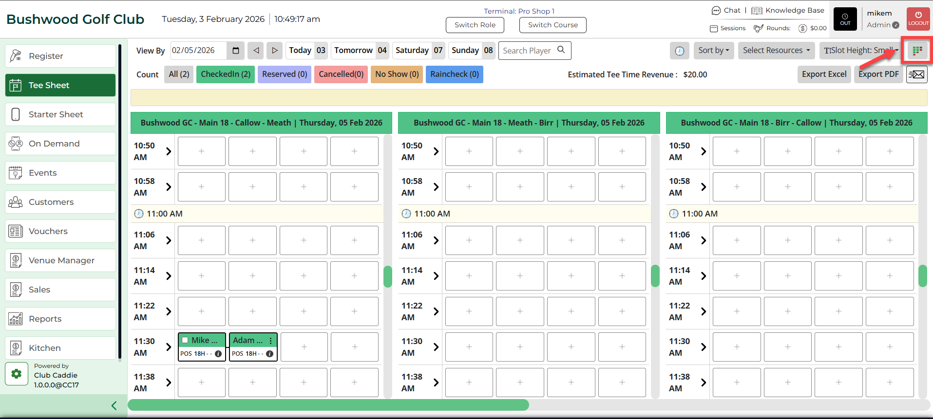 Step 3: Navigate to the Tee Sheet, and on the right side of the tee sheet, select the icon for Heat Map.