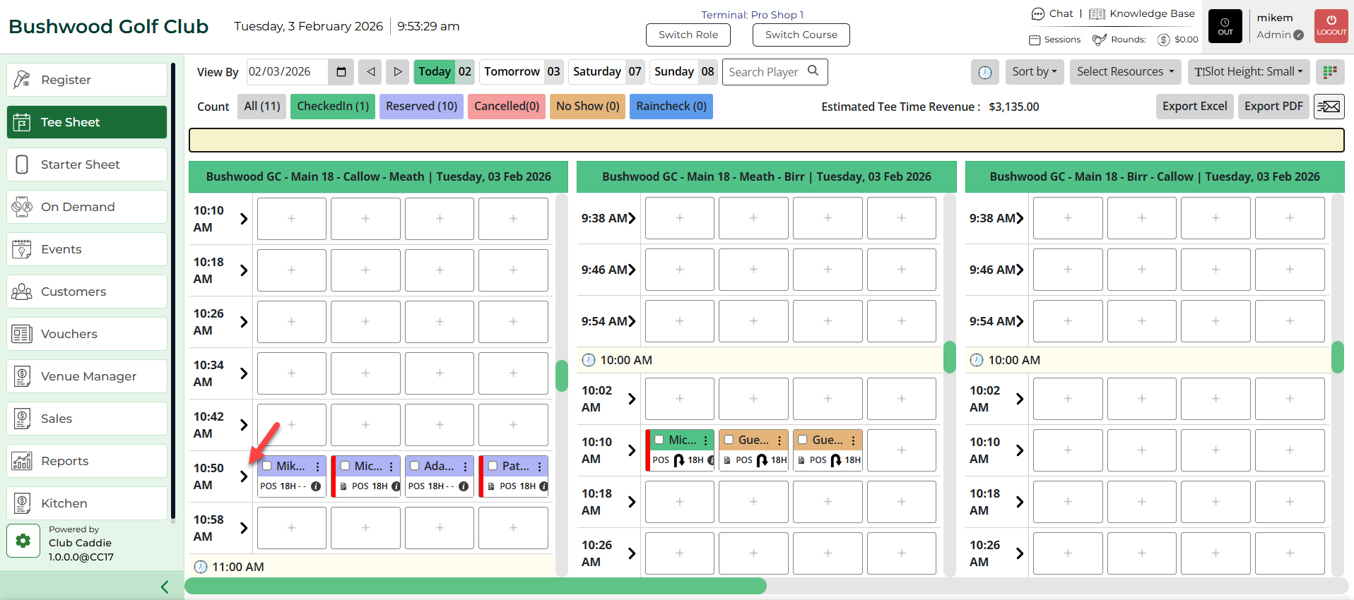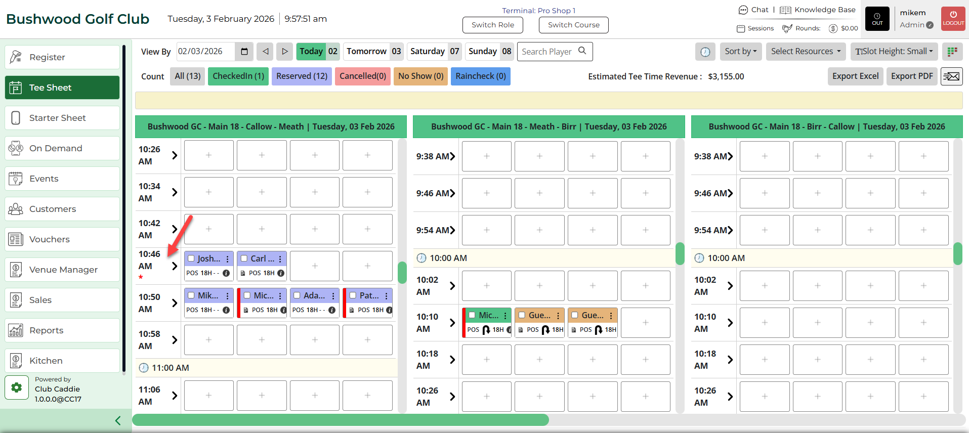 Step 5: You will then see the Squeeze Tee time on the tee sheet.