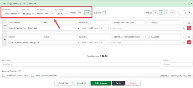 - Confirm or adjust the rate, then save. The tee time now lives on the new date only.