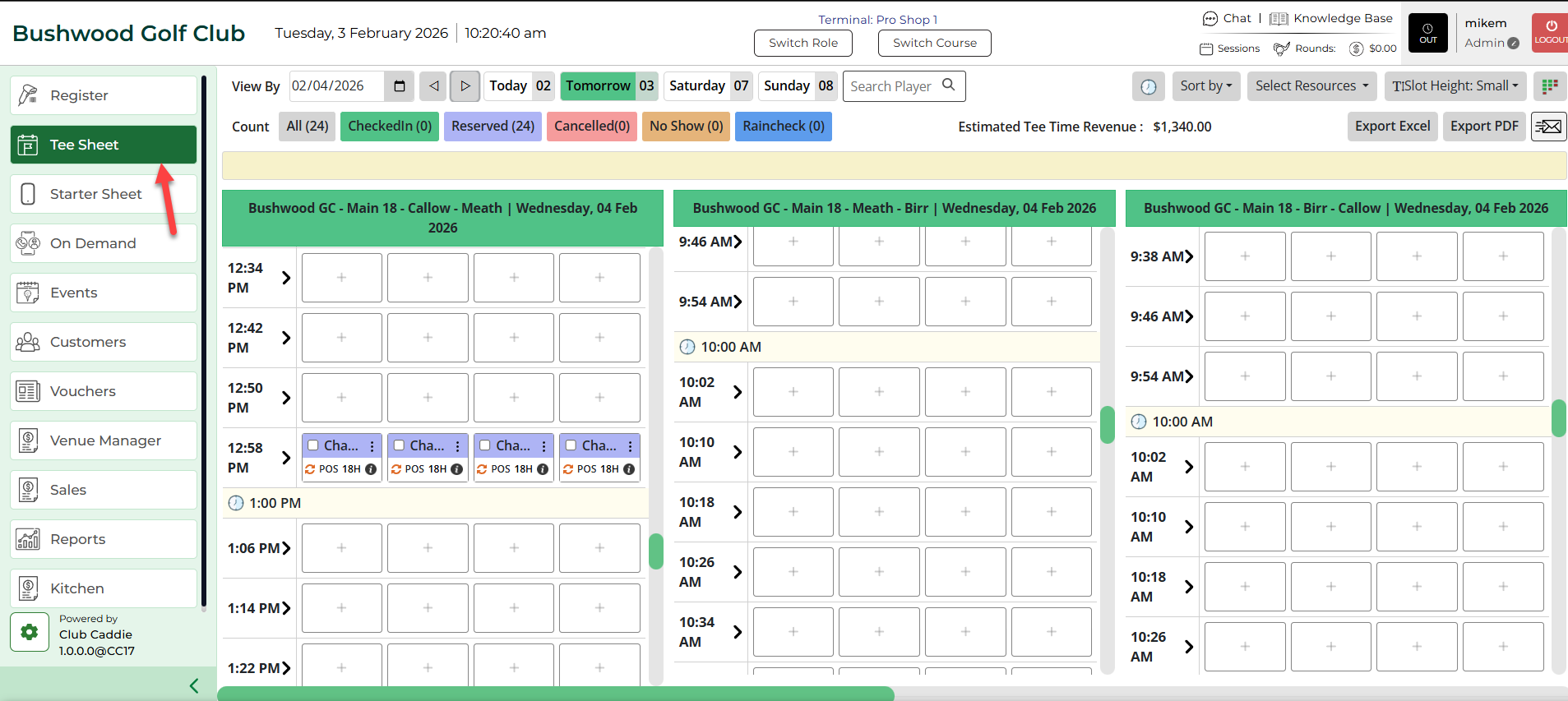 Step 1: Click on the TEE SHEET button at the top of the screen.