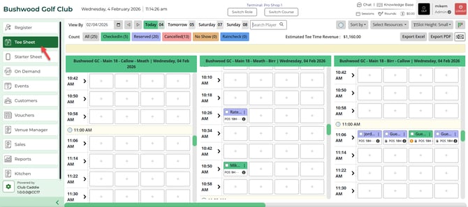 Step 1: Navigate to the Tee Sheet module in Club Caddie: