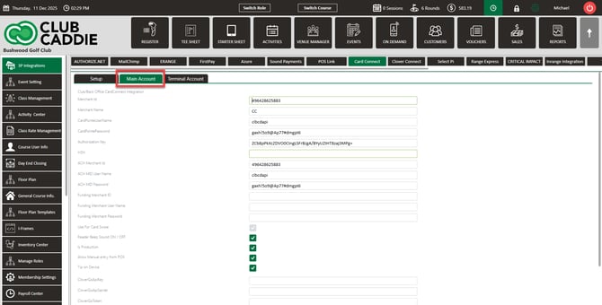 In this screen, complete the following fields using the values from the Main Account CardConnect settings page: