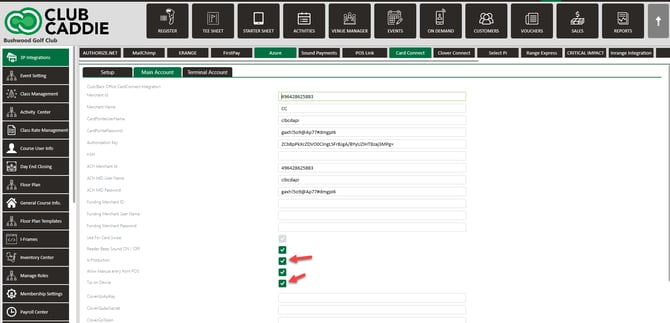 In the same terminal-specific CardConnect settings page, enable the checkboxes for Is Production and Tip on Device.