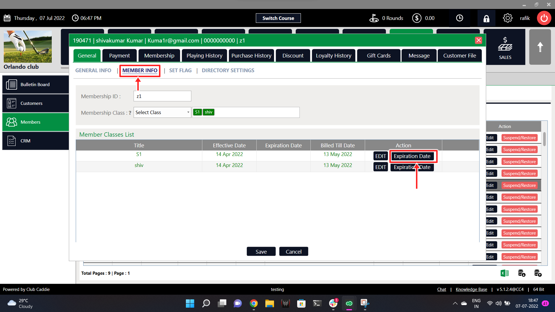 You will see a list of classes assigned to this particular member. Click on the 'Expiration Date' button and set the expiration date as you want.