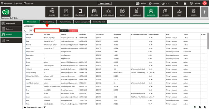 Step 2: Begin search by typing in the search box. You can search by NAME, EMAIL, CONTACT #, or MEMBERSHIP ID #. Click "Search".