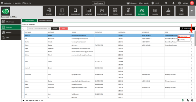 Step 3: Select the customer then click on the "Action" (3 vertical lines) button. Next, select the "View/Edit" button.