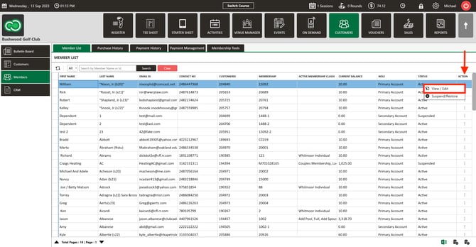 Step 3: Select the member then click on the "Action" (3 vertical lines) button. Next, select the "View/Edit" button.