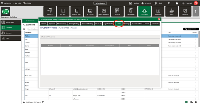 Customers : Cards Tab (List of Vouchers)