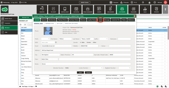 Step 4: The "Member Profile" will appear. Next, click on "Cards" tab.