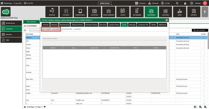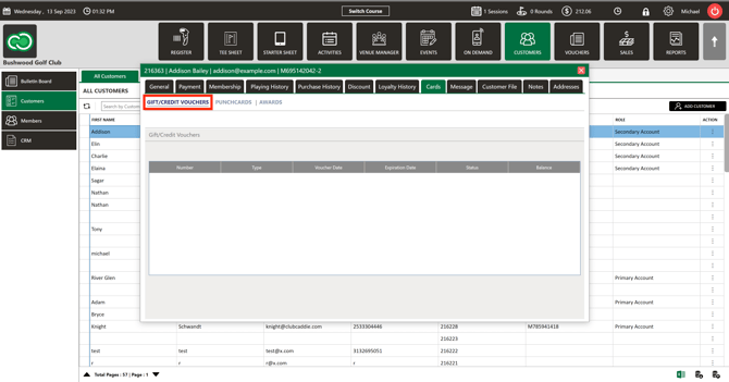 Step 5: In the "Gift/Credit Vouchers" tab you can see the list of vouchers associated with the particular customer.