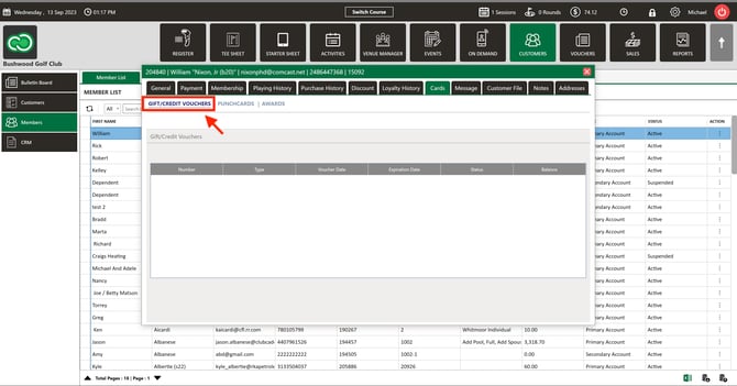 Step 5: In the "Gift/Credit Vouchers" tab you can see the list of vouchers associated with the particular Member.