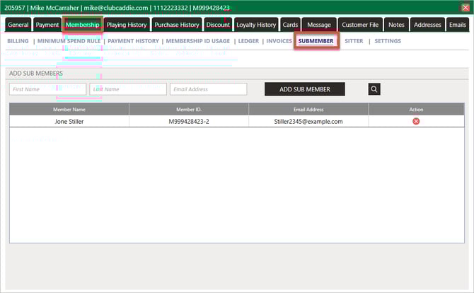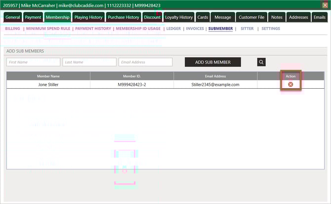 Step 2: Open the member's profile by clicking their name or selecting View/Edit from the action menu. To remove a sub-member from a primary account, open the Primary Member profile from the Members tab. Click on the Membership tab, then Sub member.