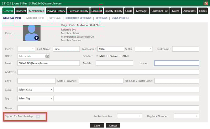 Step 6: To convert a former sub-member into a Primary Member, open their customer profile. Click Signup for Membership, select the correct membership class, and complete the sign-up process. Once saved, the profile will appear as an active member in the Members tab.