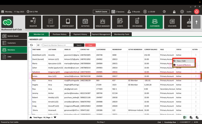 Step 2: Choose the member whose playing history you wish to view, then click on their Action Section and select View/Edit. A Customer Profile pop-up will appear.
