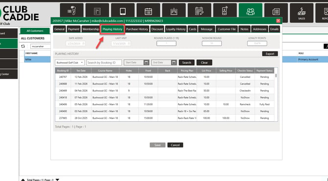 This article outlines how to search for the playing history of an individual customer or member.