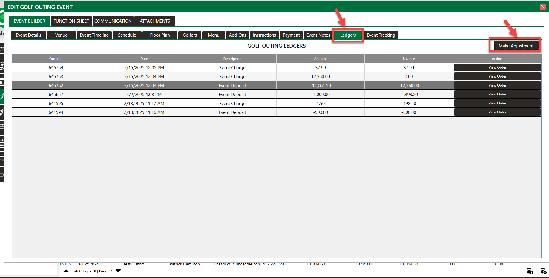 Step 2: Select the Ledger tab in the event window. Then, select Make Adjustment.
