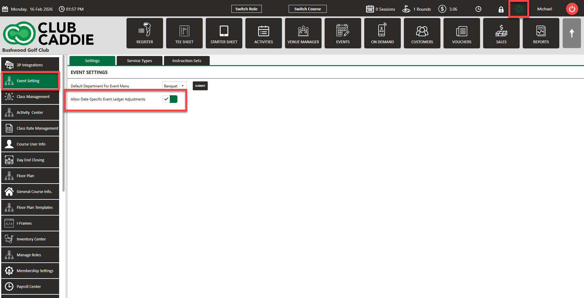 If you do not see the Adjustment Date calendar, return to Settings → Event Settings → Settings and confirm Backdated Adjustments is toggled on and saved.