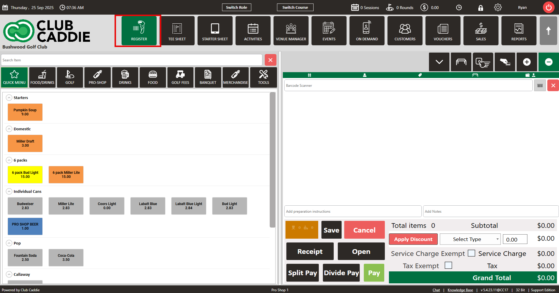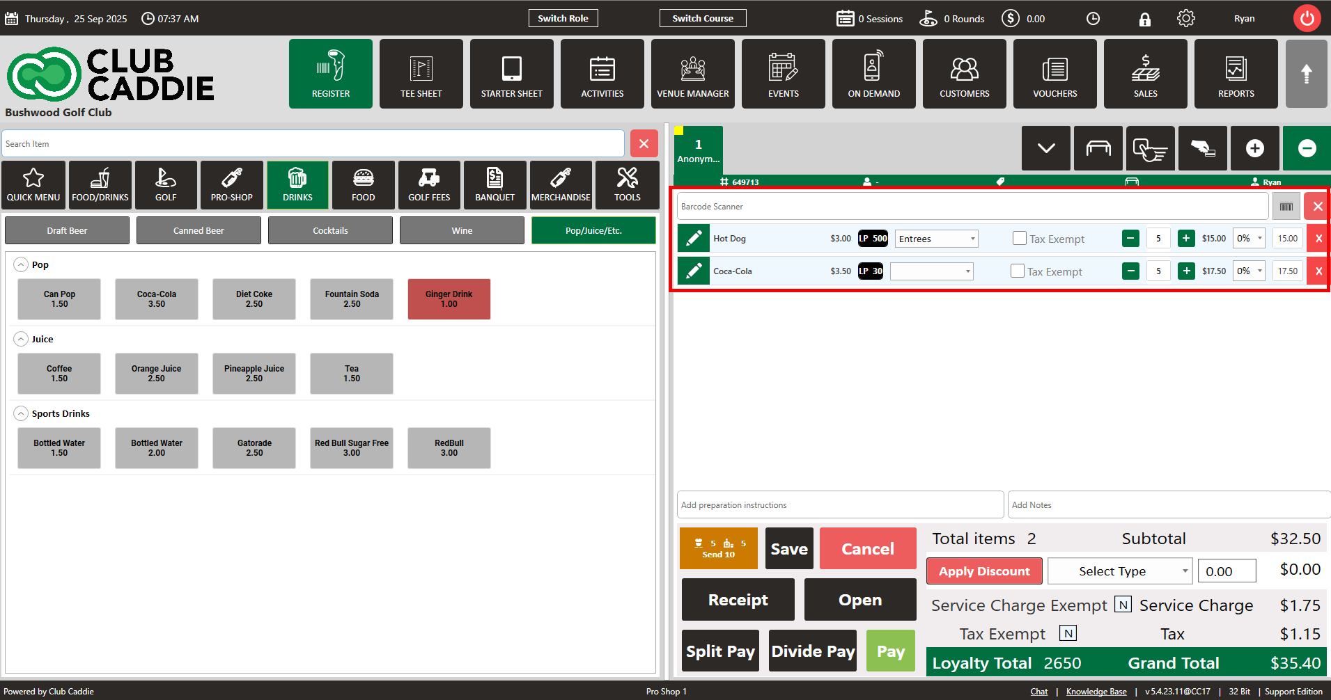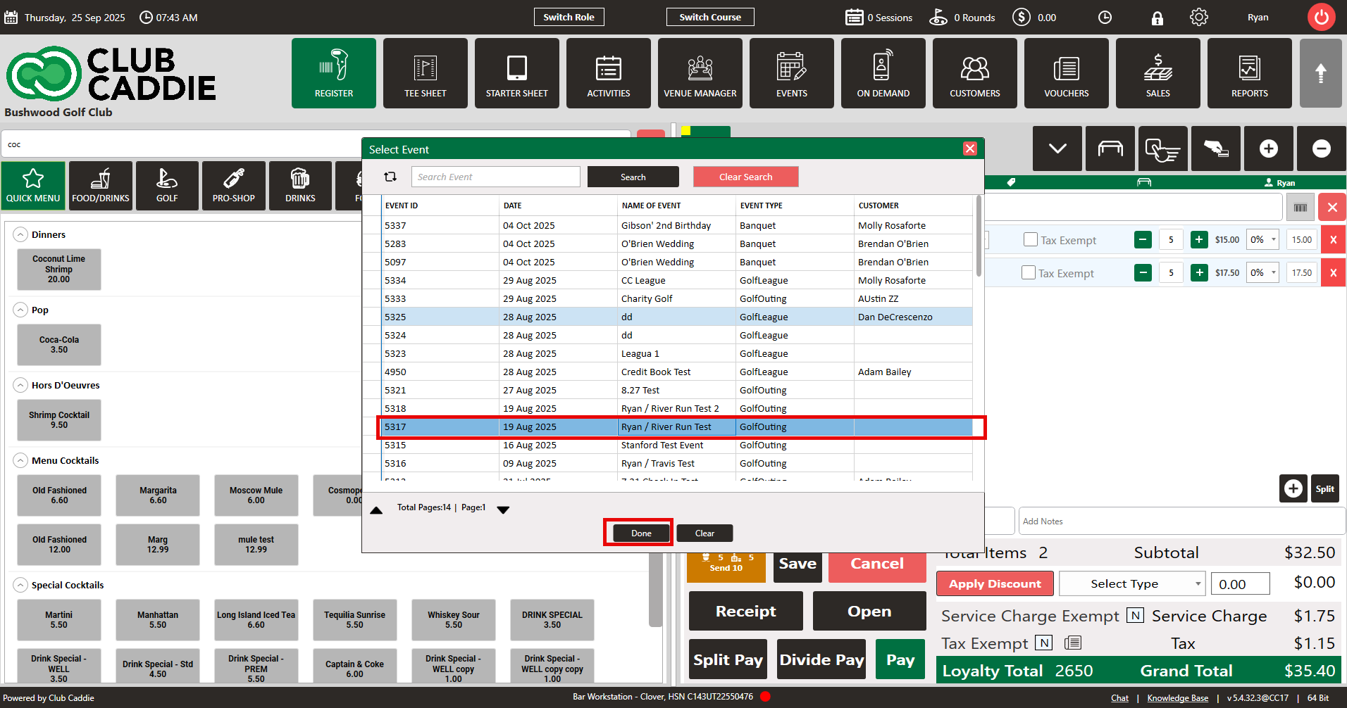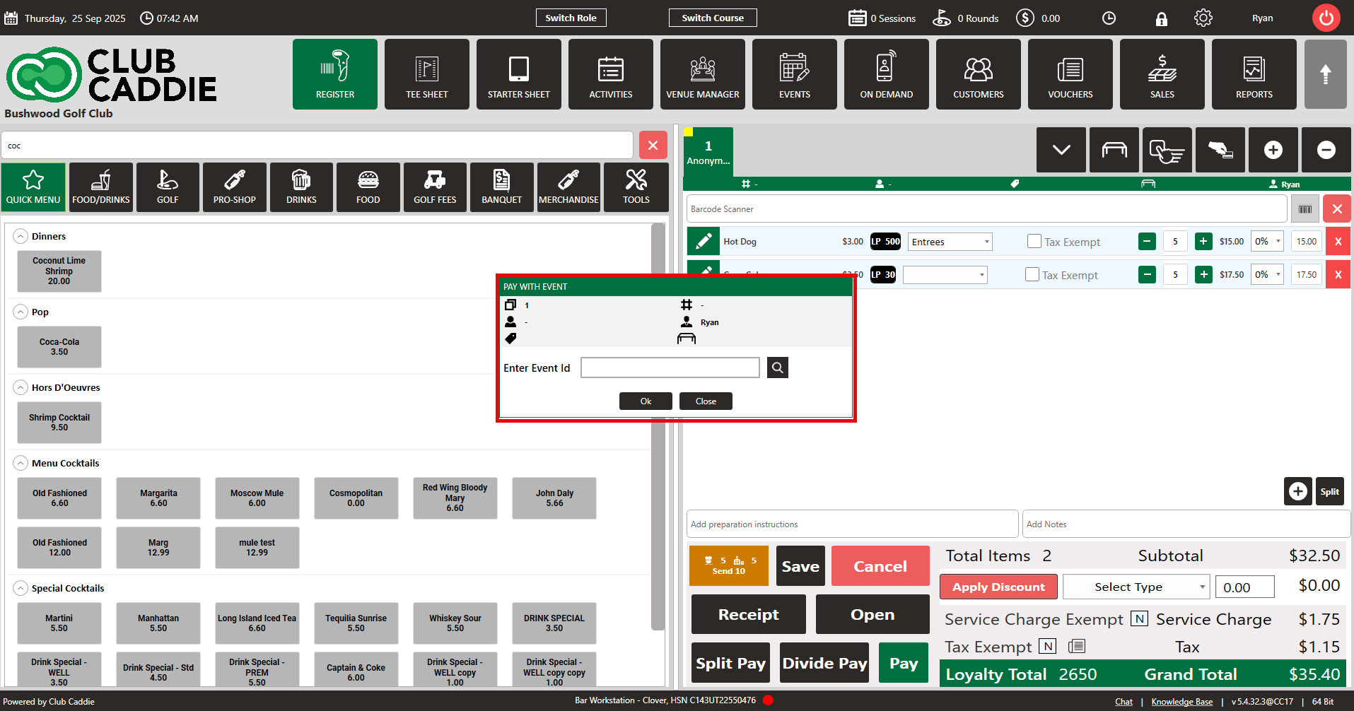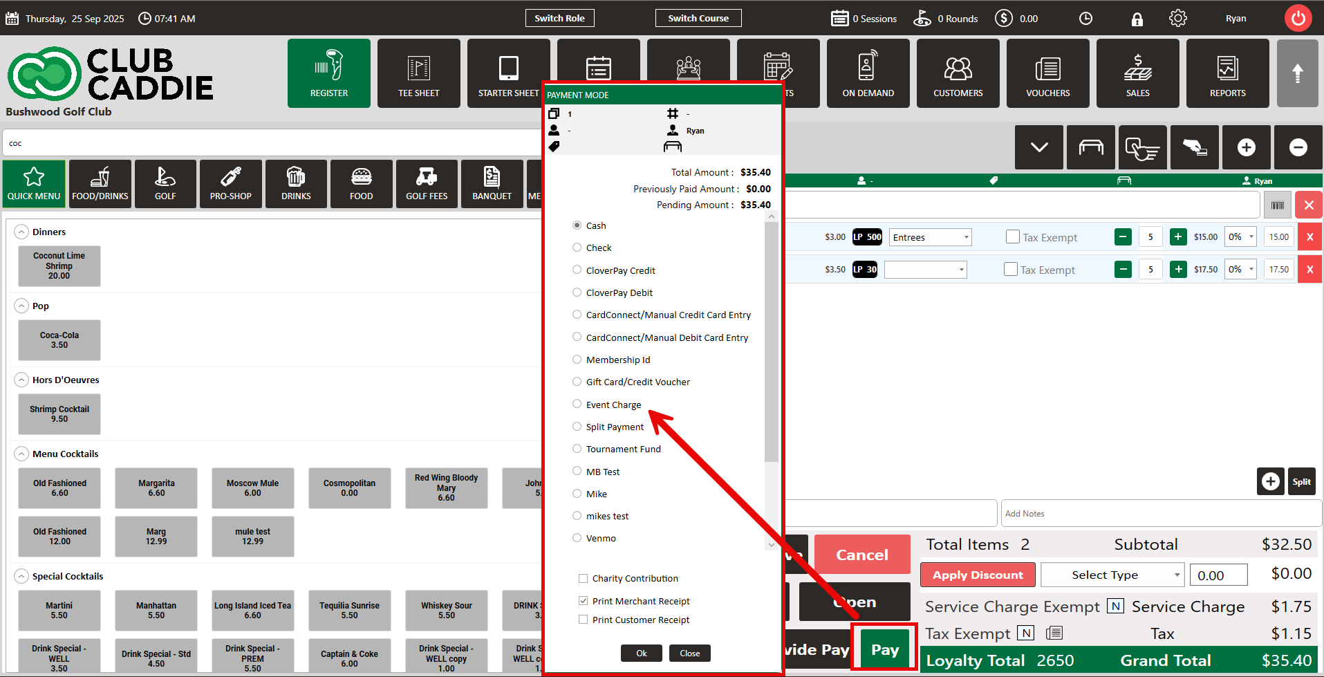 Step 2: Add items that you want to purchase and to be added to the event's invoice. Then, select Pay, followed by Event Charge.