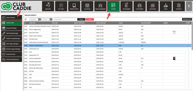 Step 1: Select the Events module and the select Online Events from the menu.