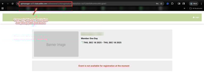 Step 3: When sharing the link, remember that you must copy the link from the event window. If you are copying from the browser, you must remove anything after "interaction" from the url before sharing. Not doing so will produce an error.
