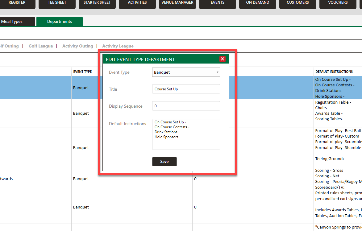 Article Contents: This article shows how users can change the order in which the departments for instructions are displayed to better organize by event types.