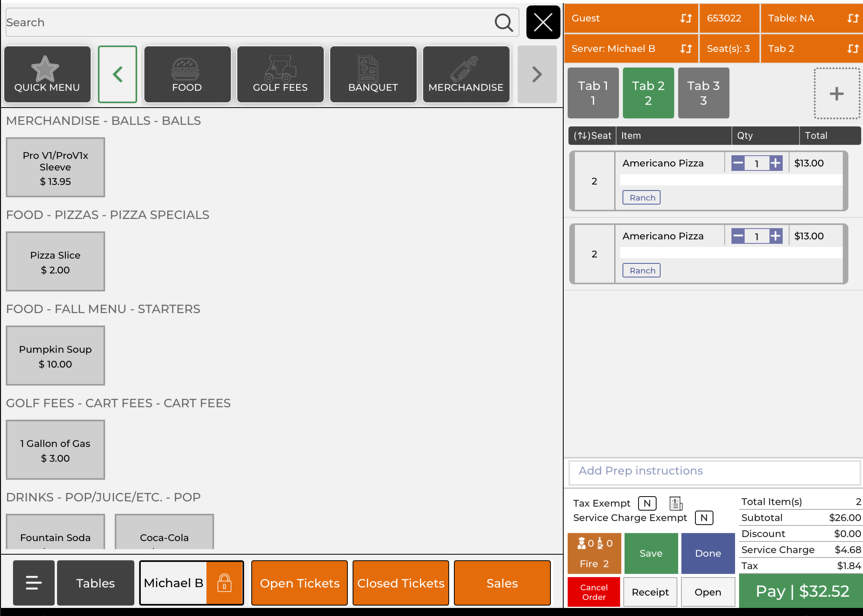 Step 1: Open the ticket that has already been split. You should see multiple tabs across the top of the order panel Ex. Tab 1, Tab 2, Tab 3, etc.