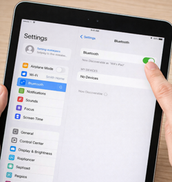 Step 3: On the iPad, open Settings, tap Bluetooth, and switch Bluetooth to On. Keep the Bluetooth screen open so the iPad can discover the device.